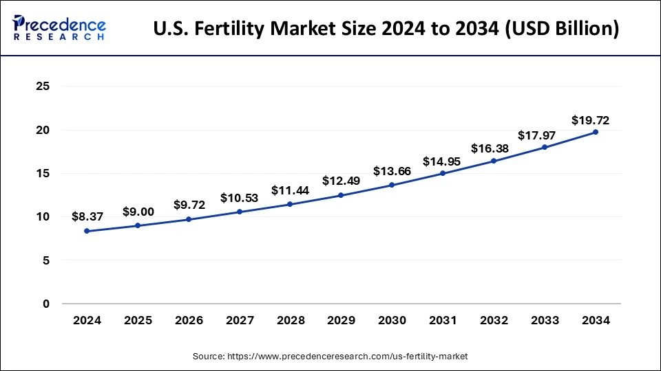 According to Precedence Research, the global fertility market size will grow from USD 39.27 billion in 2025 to nearly USD 85.53 billion by 2034, with an expected CAGR of 9.03% from 2025 to 2034.